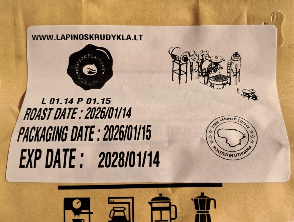 Lapino Skrudykloje visos kavos pakuotės turi aiškią skrudinimo datą, kad galėtumėte būti tikri dėl šviežumo.